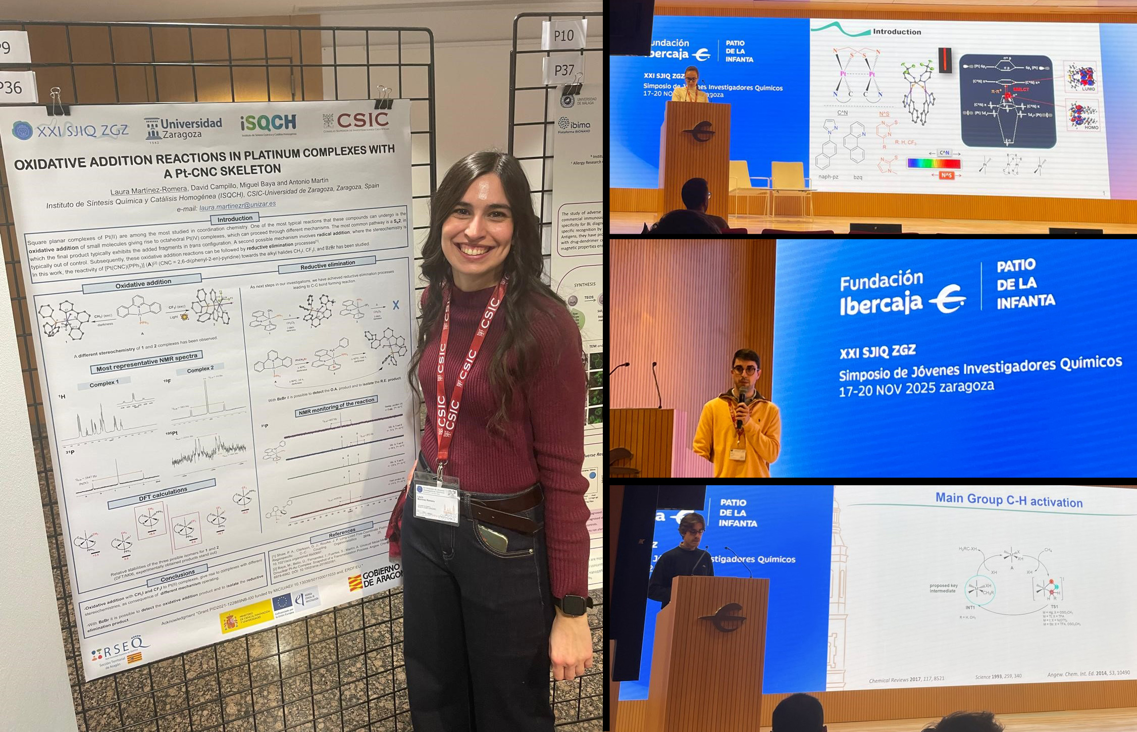 Our young researchers Laura Martínez, Irene Melendo, Jorge Roy and Daniel joven participated in the 21st Symposium for Young Chemical Researchers organised by the Royal Spanish Society of Chemistry, held in Zaragoza (Spain) from 17 to 20 November 2025.